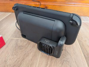 A második versenyző a DOBE és annak a Cooling Dock For N-S 2 terméke. Itt már egy bölcsőt kapunk a dokkolóhoz, amibe szépen be lehet ültetni és alulról a két ventilátor hűti a konzolt. USB-C porton csatlakoztatható és kettő USB-A csatlakozás is van a dokkolón. Még a baloldalán tudunk játékokat is tárolni. A hűtést egy érintőpanelen tudjuk állítani három fokozatban és hangulat világítást is kapunk. Elsőre tetszetős darab, de beüzemelés után rájössz, hogy egyáltalán nem hatékony és még a benne lévő ventilátoroknak is idegesítő hangja van.